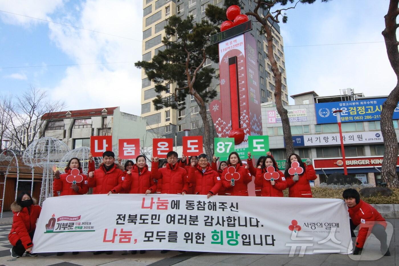 전북 사회복지공동모금회 사랑의열매는 '희망2025나눔캠페인'이 모금액 100억7900만원으로 마감했다고 3일 밝혔다.(전북 사랑의열매 제공) 2025.2.3/뉴스1관련 키워드전북 사랑의열매희망나눔캠페인기부관련 기사세상이 어지러워도 어김없이 나타난 '평범한 천사들'(종합)'100도 도전'…전북 희망2026나눔캠페인 본격 시작고창군, 3년연속 '희망 나눔캠페인' 우수기관 선정…목표액 2배 모금지난해 전북서 242억여원 상당 기부…인구 1인당 모금액 '전국 4위'전북 사랑의온도 사실상 2년 연속 '100도 달성 실패'