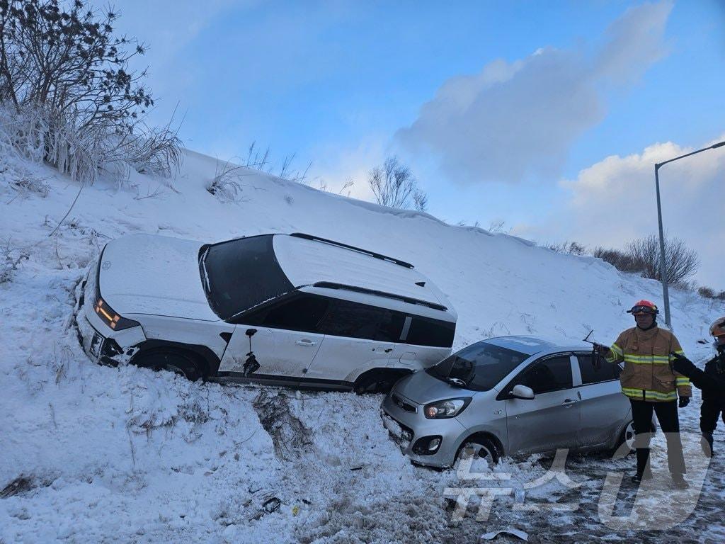 7일 오후 4시 50분께 전북자치도 고창군 무장면 서해안고속도로 하행선 67㎞ 지점에서 차량 6대가 추돌했다.(고창소방 제공) 2025.2.7/뉴스1관련 키워드고창 소방서해안고속도로눈길 미끄러짐 사고