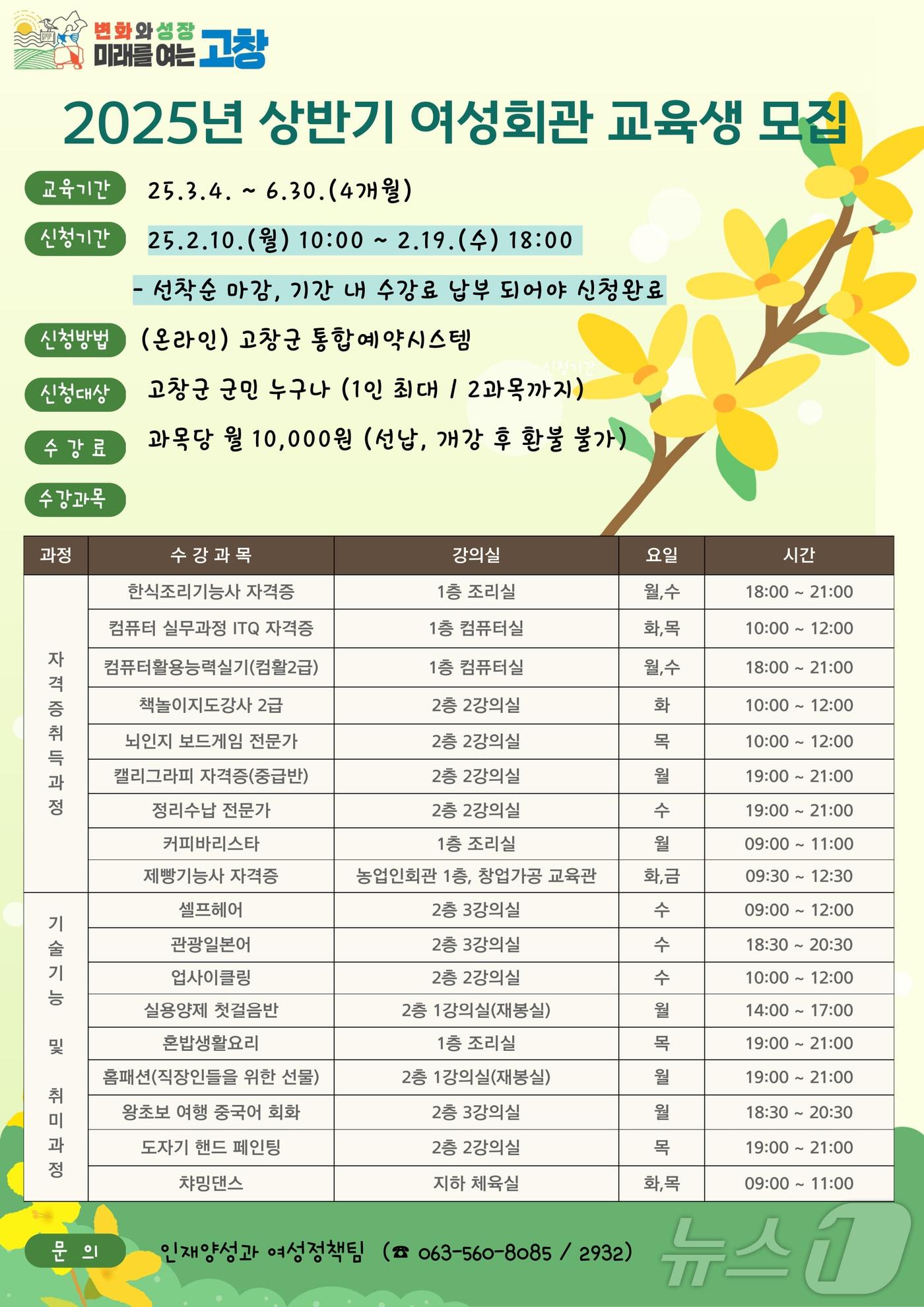 고창군, 상반기 여성회관 교육생 모집…한식조리 등 18개 과목