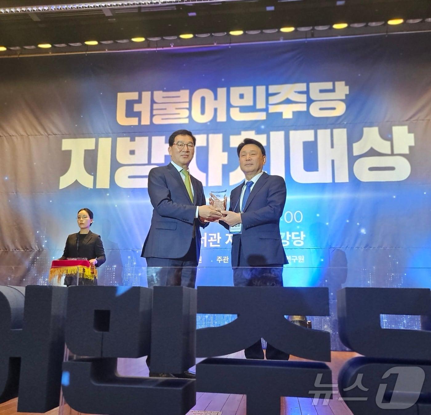 우수정책부문 선도정책상도 수상강임준 군산시장(사진 오른쪽)이 10일 국회도서관 대강당에서 열린 '더불어민주당 지방자치대상' 시상식에서 종합부문 최우수상을 수상하고 있다. 2025.2.10/뉴스1관련 키워드강임준군산시장더불어민주당지방자치대상김재수 기자 군산시, '관리부실 논란' 유기동물보호센터…직영 체제로고창 상하 단독주택서 불…1210만원 재산 피해관련 기사KDLC전북 "자치분권으로 발전방향 모색"…내달 신년인사회[오늘의 주요일정] 전북(18일, 목)강임준 3선 도전에 후보군 난립…내년 군산시장 선거 엿보기[뉴스1전북 여론조사] 군산시장 적합도…강임준 15.6%, 서동석 10.4%[오늘의 주요일정] 전북(16일, 화)