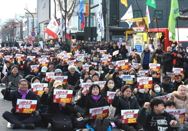 전북 전주 객사서 ‘제9차 윤석열 퇴진 비상 촛불집회’ 개최15일 오후 전북 전주시객사 앞 도로에서 '제9차 윤석열 퇴진 비상 촛불집회'가 개최됐다.(재판매 및 DB 금지)2025.2.15/뉴스1 신준수 기자관련 키워드尹비상계엄선포윤석열 탄핵전주 객사임충식 기자 전주 배 올해 첫 수출길…베트남 전역에 공급전주야구장·실내체육관 2027년 준공…우범기 시장 "속도 낼 것"관련 기사'尹 석방' 전주시민들 "말도 안 되는 일 벌어져…빨리 파면해야"(종합)주말 다시 모인 전주시민 "이제 끝나간다…3월 반드시 탄핵돼야"