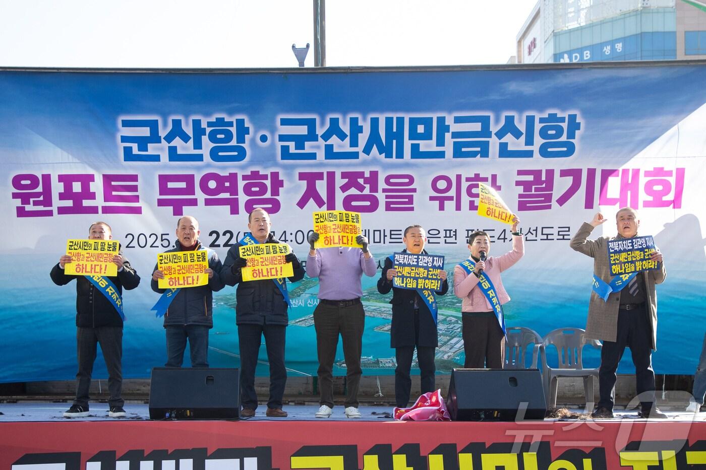 새만금지킴이 범시민위원회는 22일 군산시 수송동 롯데마트 앞에서 시민 등 1000여명이 참석한 가운데 '군산항·군산새만금신항 원포트 무역항 지정을 위한 범시민 궐기대회'를 갖고 있다.(군산시의회 제공. 재판매 및 DB 금지) 2025.2.22/뉴스1