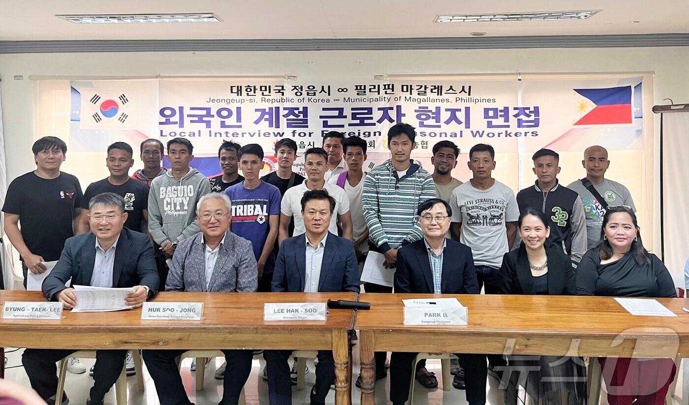 정읍시는 24~ 27일 업무협약(MOU)을 체결한 필리핀 마갈레스시와 나익시를 방문해 계절근로자 예정자를 대상으로 현지 면접을 실시했다.(정읍시 제공. 재판매 및 DB금지)2025.2.27/뉴스1관련 키워드필리핀 외국인 계절근로자정읍시관련 기사'외국인 근로자 인권 보호'…정읍시, 9~27일 근로환경 실태 점검정읍시, 외국인 공공기숙사 개관…26실 규모 최대 54명 입주
