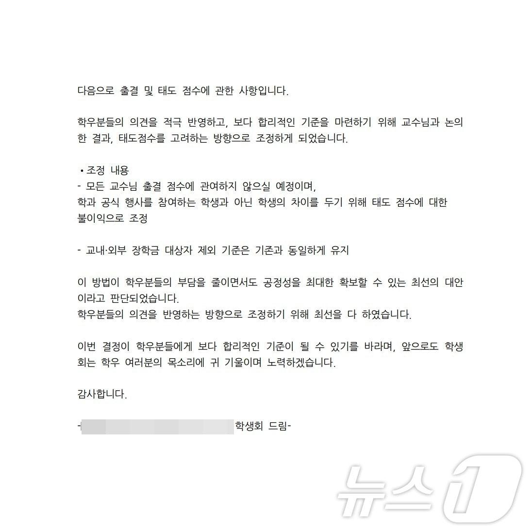 대학 관계자 "잘못된 공지…전체학과 점검 예정"전북 한 사립대 A 학과 공지내용(독자 제공. 재판매 및 DB금지)관련 키워드OT대학생 OT장학금대학 논란장수인 기자 2층 주택서 떨어진 유리문…군인이 몸 던져 행인 구하고 부상"사육·가공·유통 생태계 갖춰"…익산시, '치킨벨트 거점 지정' 건의