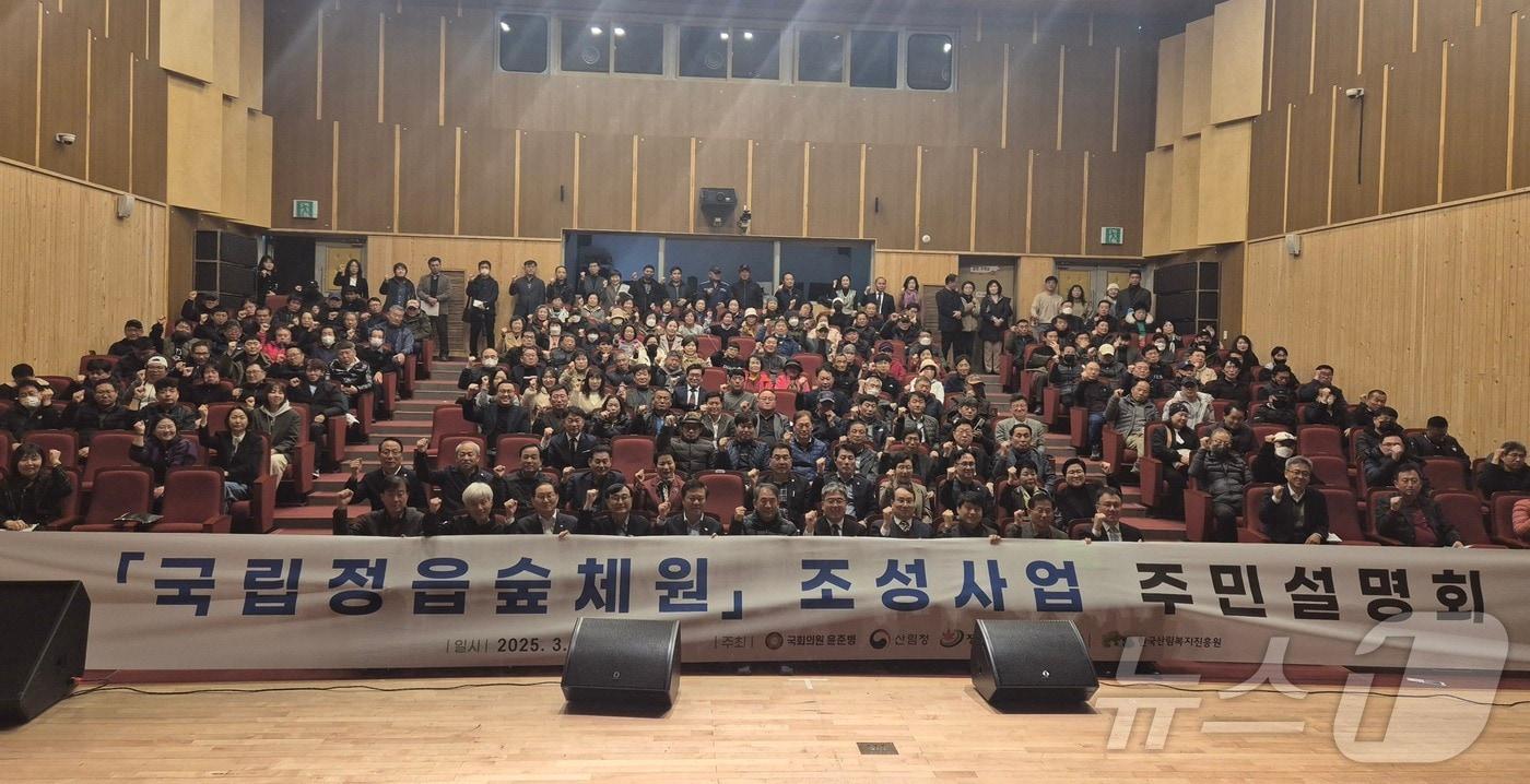 윤준병 의원, 8일 정읍서 조성사업 추진 설명회 열어 이학수 정읍시장 "'산림 휴양도시 메카'로 정읍 발전 기대"8일 정읍 연지아트홀에서 열린 ‘국립정읍숲체원’ 조성사업 주민설명회(윤준병 의원실 제공. 재판매 및 DB금지)관련 키워드국립장성숲체험원정읍시 북면 복흥리윤준병 의원주민설명회