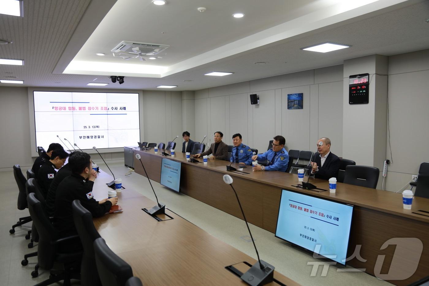부안해양경찰서(서장 서영교)는 해공합동단속을 위해 무안항공대와 업무협약을 맺었다. 부안해경과 무안항공대 수사자료 토의(부안해경 제공. 재판매 및 DB금지)관련 키워드부안해경무안항공대