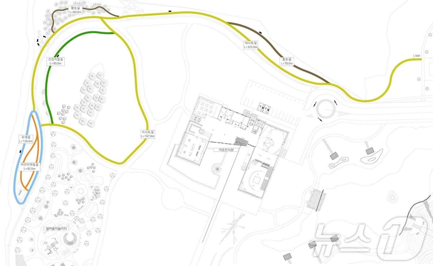 정읍시가 백제가요 정읍사 관광지인 '한국가요촌 달하' 활성화를 위해 '맨발걷기길' 조성 사업을 추진한다. 사업 계획도(정읍시 제공. 재판매 및 DB금지)관련 키워드정읍 '한국가요촌 달하''맨발걷기길'