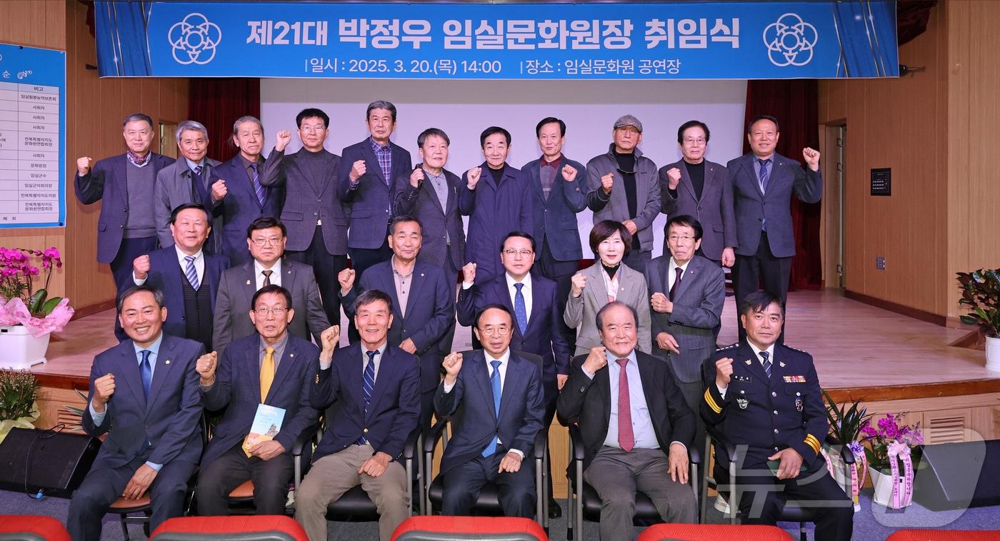 박정우 제21대 임실문화원장(앞줄 왼쪽 세번째)이 취임식을 갖고 있다.(임실군제공.재판매 및 DB금지)2025.3.21/뉴스1관련 키워드임실문화원원장김동규 기자 "촘촘한 노인복지 정책 협력"…김관영 전북지사, 임실군 방문진안군, 농업창업·주택지원 대상자 모집…연 2% 대출 금리관련 기사박정규 전북도의원, 임실 출신 '전해산 의병장' 가치 재조명박정우 제21대 임실문화원장 선출…"숨어 있는 향토 문화 연구"