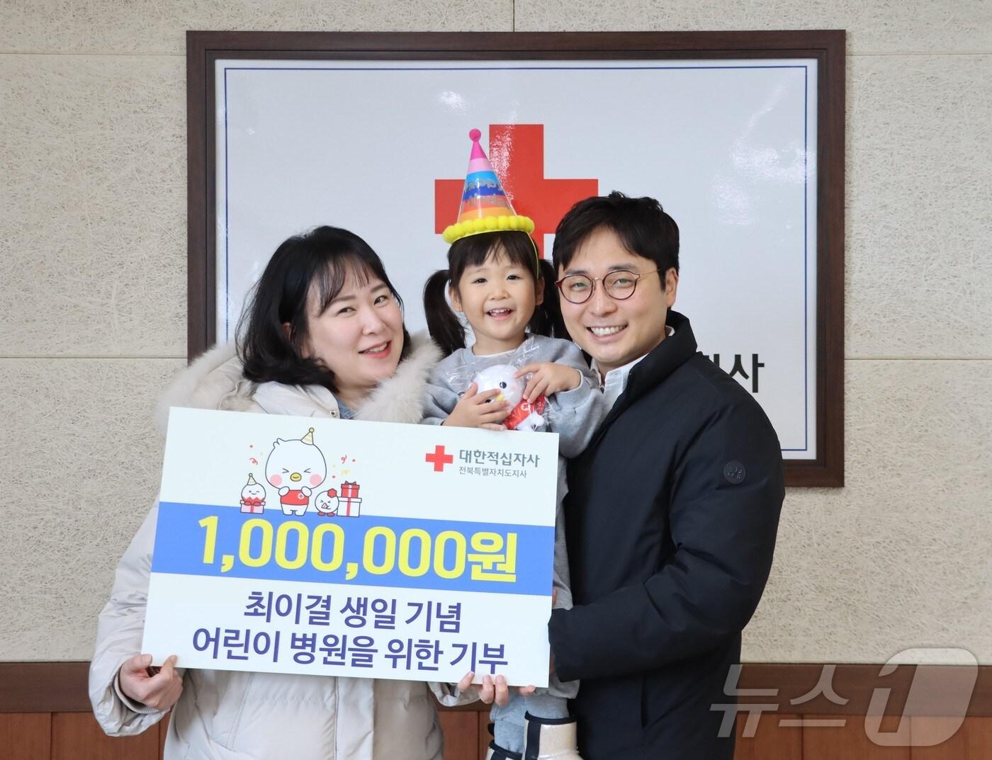 전북 전주의 거주하는 최이결 양(4)과 그 가족들이 어린이 환우를 위한 기부금 100만원을 대한적십자사 전북자치도지사에 전달했다.(전북적십자사 제공. 재판매 및 DB 금지)관련 키워드대한적십자사전북적십자어린이 환우장수인 기자 2층 주택서 떨어진 유리문…군인이 몸 던져 행인 구하고 부상"사육·가공·유통 생태계 갖춰"…익산시, '치킨벨트 거점 지정' 건의