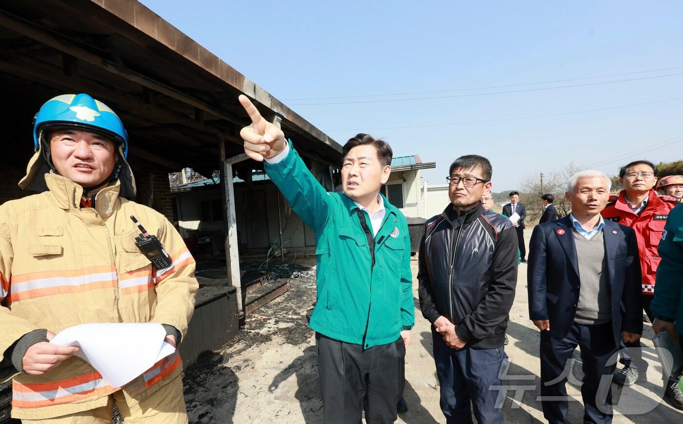 건축물 13동 피해·이재민 12명…임시 거주시설 운영 및 전담공무원 배치 26일 김관영 전북자치도지사가 지난 25일 발생한 정읍시 소성면 산불 피해 현장을 찾아 복구 상황을 점검하고 이재민 지원 대책 등을 논의하고 있다. (전북자치도 제공. 재판매 및 DB 금지)/뉴스1유승훈 기자 "3특 내 중추도시 형성에도 광역 통합 수준 지원 필요"남원시, 축산악취개선 사업 본격 추진…올해 66억 투입
