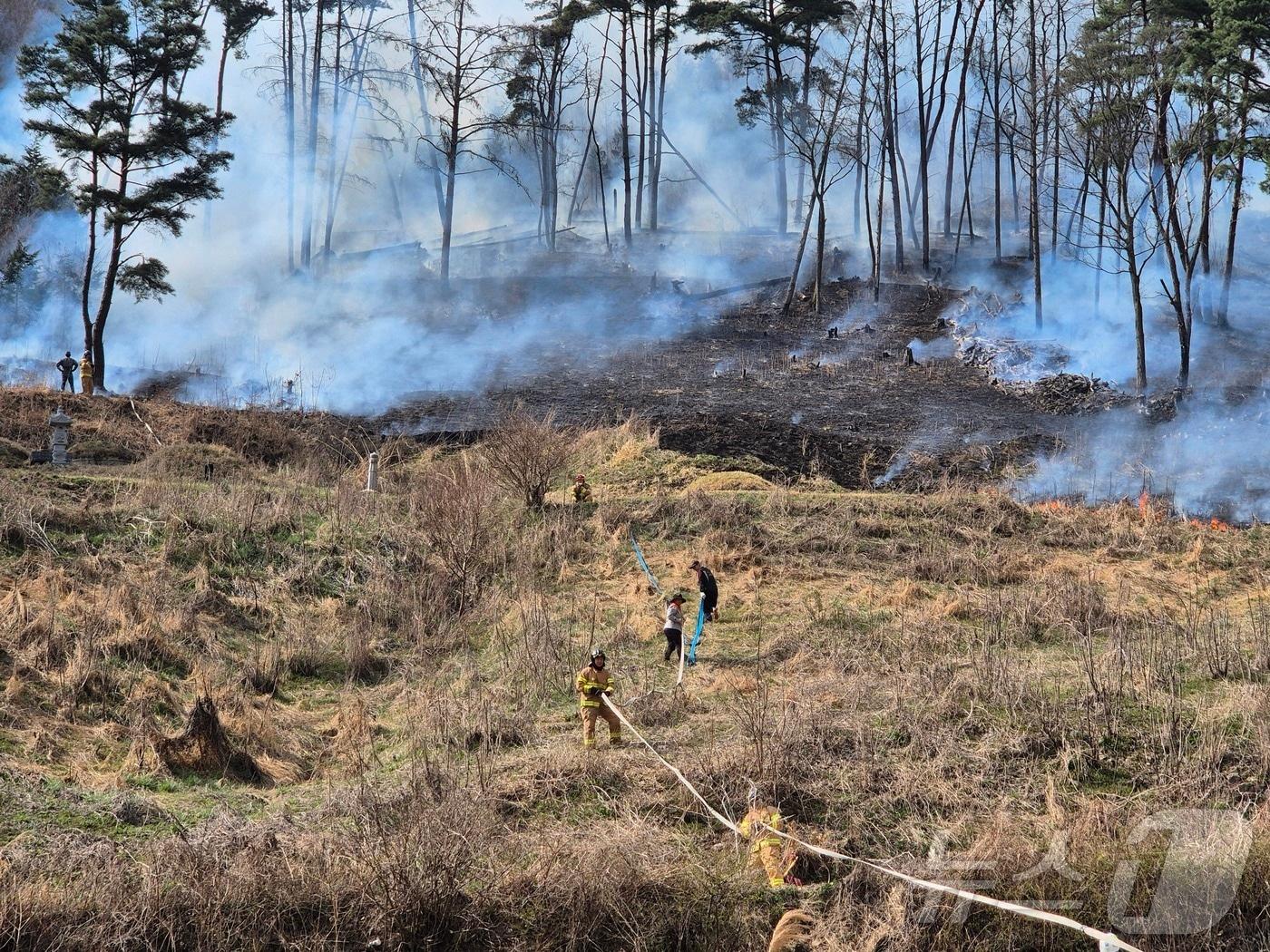 '예초기 작업 중' 발생 화재로 추정4일 오후 2시25분께 전북자치도 순창군 쌍치면 한 야산에서 불이 나 2시간 50여분 만에 꺼졌다.(전북소방 제공. 재판매 및 DB금지)2025.4.4/뉴스1관련 키워드순창 산불예초기 발화 추정소방당국산림당국강교현 기자 장수군, 농작업 재해 예방…안전컨설팅 참여자 모집자광, 다음 달 11일 전주 옛 대한방직 부지서 '비전 페스타'