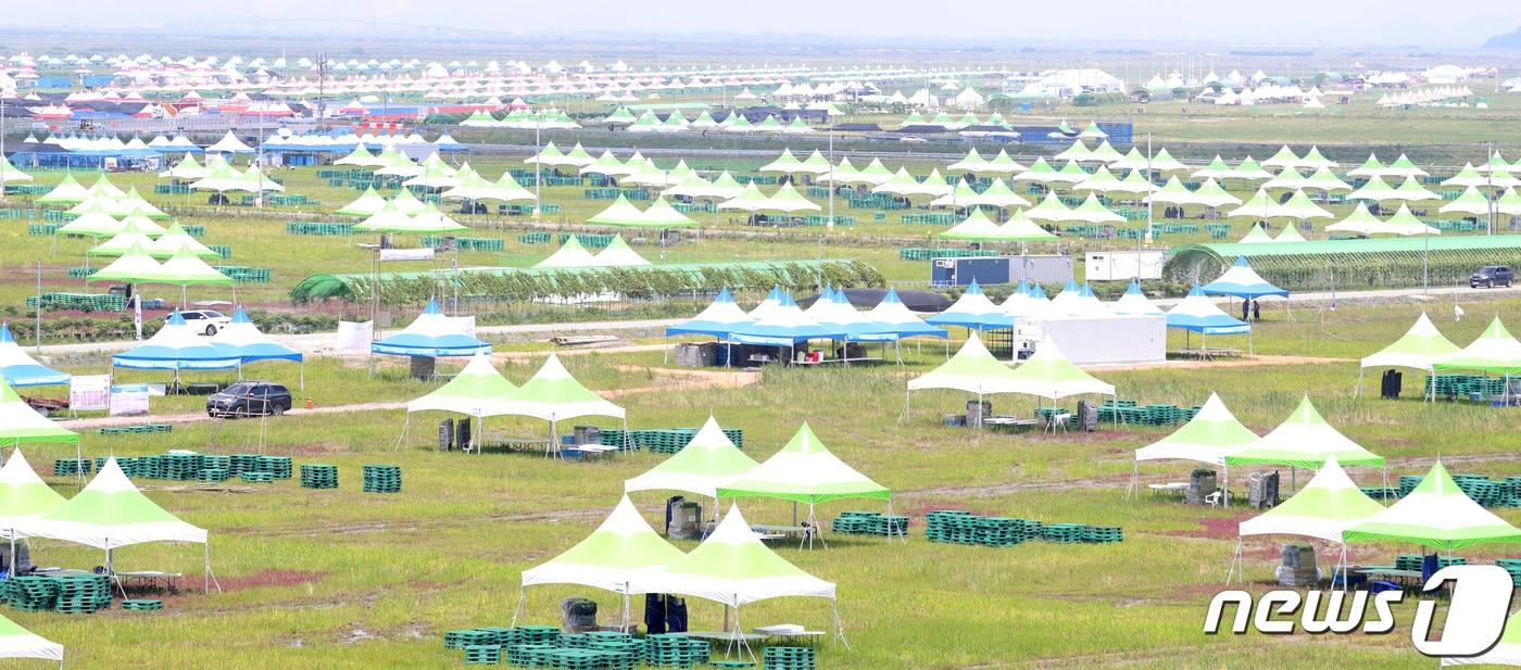 2023 새만금 제25회 세계스카우트잼버리 개막을 하루 앞둔 31일 전북 부안군 잼버리 경관 쉼터에서 바라본 야영지 모습. 2023.7.31/뉴스1 ⓒ News1 유경석 기자
