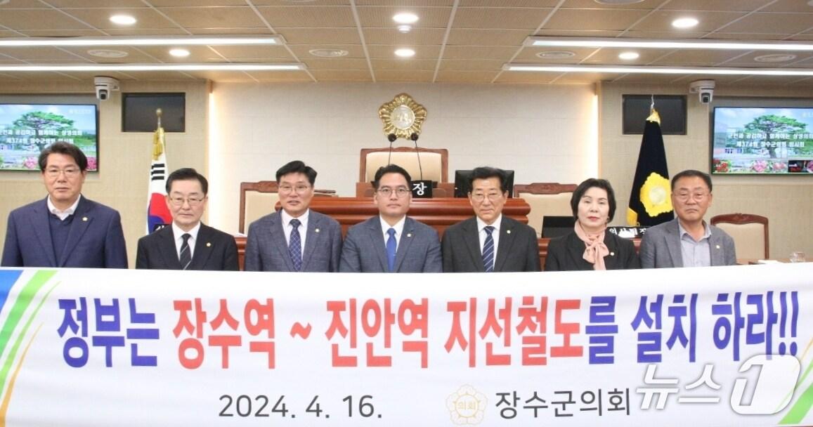 제374회 임시회서 건의안 채택전북자치도 장수군의회가 '장수역~진안역 지선철도 설치'를 촉구하고 나섰다.(의회 제공. 재판매 및 DB금지)2025.4.16/뉴스1관련 키워드장수군의회장수군장수역진안역달빛철도지선철도국토부강교현 기자 장수군, 농작업 재해 예방…안전컨설팅 참여자 모집자광, 다음 달 11일 전주 옛 대한방직 부지서 '비전 페스타'관련 기사진안군 사회단체들 "농어촌기본소득 시범사업 확대하라"서거석 전북교육감 재산 2억5400만원…전년比 2억3천만원 증가