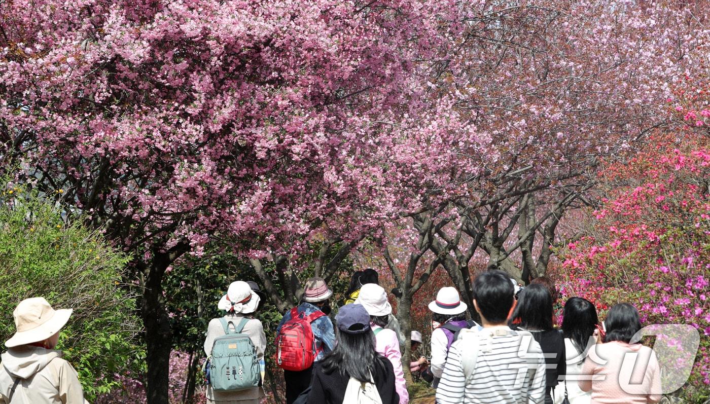 16일 전북자치도 전주시 완산칠봉 꽃동산을 찾은 상춘객들이 활짝 핀 해당화 아래에서 사진을 찍고 있다. 2025.4.16/뉴스1 ⓒ News1 유경석 기자김동규 기자 "촘촘한 노인복지 정책 협력"…김관영 전북지사, 임실군 방문진안군, 농업창업·주택지원 대상자 모집…연 2% 대출 금리