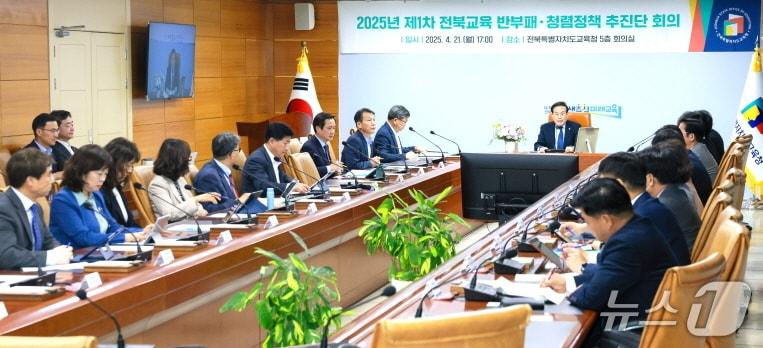 반부패·청렴정책 추진단 1차 회의1일 도교육청 5층 회의실에서 ‘2025년 제1차 전북교육 반부패·청렴정책 추진단 회의’가 개최됐다.(전북교육청 제공, 재판매 및 DB 금지)/뉴스1관련 키워드전북교육청서거석 교육감청렴도임충식 기자 전주 배 올해 첫 수출길…베트남 전역에 공급전주야구장·실내체육관 2027년 준공…우범기 시장 "속도 낼 것"관련 기사천호성 교수. 전북교육감 출마 선언 "새로운 교육생태계 만들 것""청렴 실천, 고위공직자부터" 전북교육청, '청렴 다짐 릴레이'공무원노조 "41억원 입찰비리 의혹, 도교육청 수사 철저히 하라"전북교육청-국민권익위, '청렴문화 확산' 업무협약정읍교육지원청, 지역 학교장 대상 '청렴교육' 실시