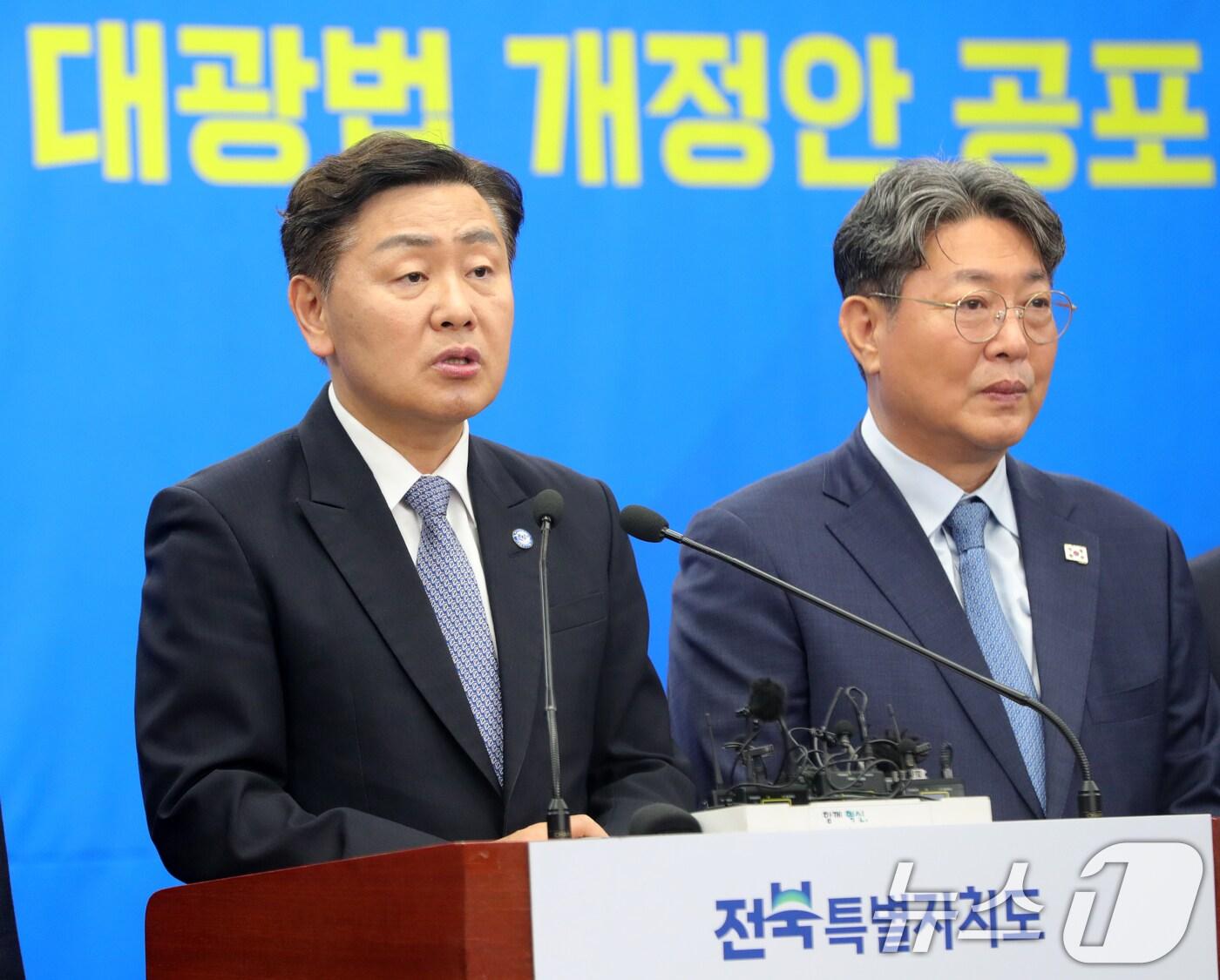 후속 절차 착수…전북 발전, 지역 균형발전 촉진 기대김관영 지사 "도민 체감형 사업 발굴 등 후속 절차 준비할 것"김관영 전북특별자치도지사가 22일 전북자치도 전주시 전북특별자치도청에서 대광법 개정안 공포 관련 브리핑을 하고 있다. 2025.4.22/뉴스1 ⓒ News1 유경석 기자김관영 전북특별자치도지사를 비롯한 관계자들이 22일 전북자치도 전주시 전북특별자치도청에서 대광법 개정안 공포 관련 브리핑을 마치고 기념촬영을 하고 있다. 2025.4.22/뉴스1 ⓒ News1 유경석 기자유승훈 기자 '2년 연속 불발' 김관영 전북지사 완주군 방문, 이번엔 성사되나[오늘의 날씨] 전북(17일, 토)…구름 많다가 오전부터 맑아져