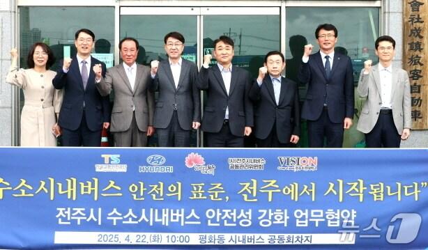 운수사·현대차·비전대·교통안전공단과 업무협약 체결22일 전주시 평화동 시내버스 회차지에서 ‘수소시내버스 안전성 확보를 위한 업무협약식’이 개최됐다. (전주시 제공, 재판매 및 DB 금지)/뉴스1관련 키워드전주시수소시내버스현대차비전대교통안전공단우범기 시장임충식 기자 원어민 화상영어 토킹클래스 호응…참여 학생 88.2% "만족"'전주시장 출마' 국주영은 전 전북도의장 "빚부터 갚는 시장될 것"
