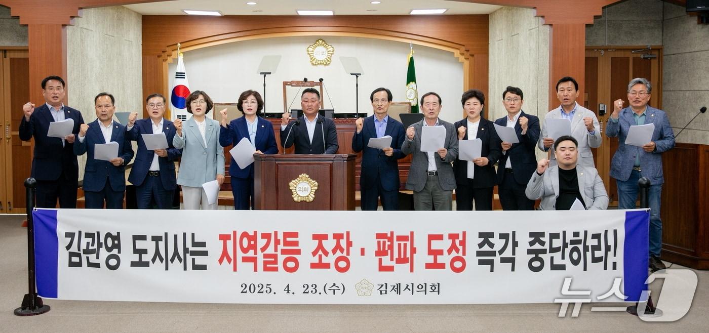 임시회서 '김관영 지사 편향된 도정 운영 규탄 결의안' 채택김제시의회는 23일 제288회 임시회를 열고 새만금 신항 신규 국가관리무역항 지정 촉구와 김관영 전북자치도지사의 편향된 도정운영을 규탄하는 결의안을 채택했다.(김제시의회 제공. 재판매 및 DB금지)관련 키워드김제시의회새만금신항결의안김재수 기자 김제시의회·시민연대 "새만금신항 기본계획 유지하라"국립군산대 18년 연속 등록금 동결…4년제 일반대학 중 최저 수준관련 기사김제시의회 "전북자치도 새만금신항 무역항 지정 중립 지켜야"