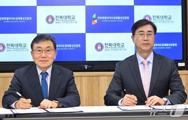 전북경제통상진흥원과 업무협약, 지역 특화산업 기반 협력체계 구축전북대 JBNU지역발전연구원과 전북특별자치도경제통상진흥원이 23일 업무협약을 맺고 지역 특화산업 육성과 지속가능한 지역사회 발전을 위해 힘을 모으기로 했다.(전북대 제공, 재판매 및 DB 금지)/뉴스1관련 키워드전북대 지역발전연구원전북경제통상진흥원업무협약임충식 기자 전주 배 올해 첫 수출길…베트남 전역에 공급전주야구장·실내체육관 2027년 준공…우범기 시장 "속도 낼 것"관련 기사"거점국립대 육성"…전북대, '지산학연 협력벨트' 구축