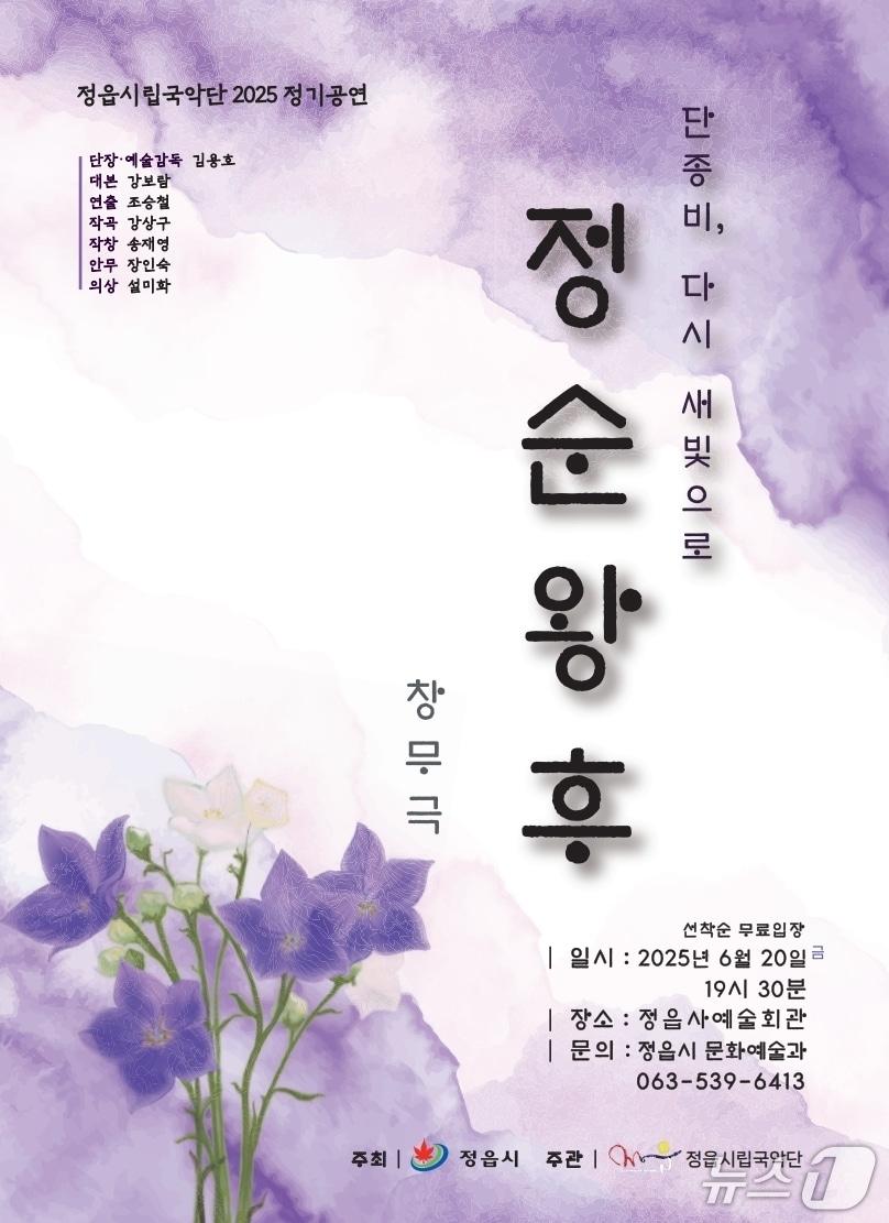 정읍시립국악단, 20일 '단종의 비 다시 새빛으로' 공연 ‘단종비 다시 새빛으로’ 무료공연 포스터(정읍시 제공, 재판매 및 DB금지)관련 키워드‘단종비 다시 새빛으로’ 공연정읍 출신정순왕후