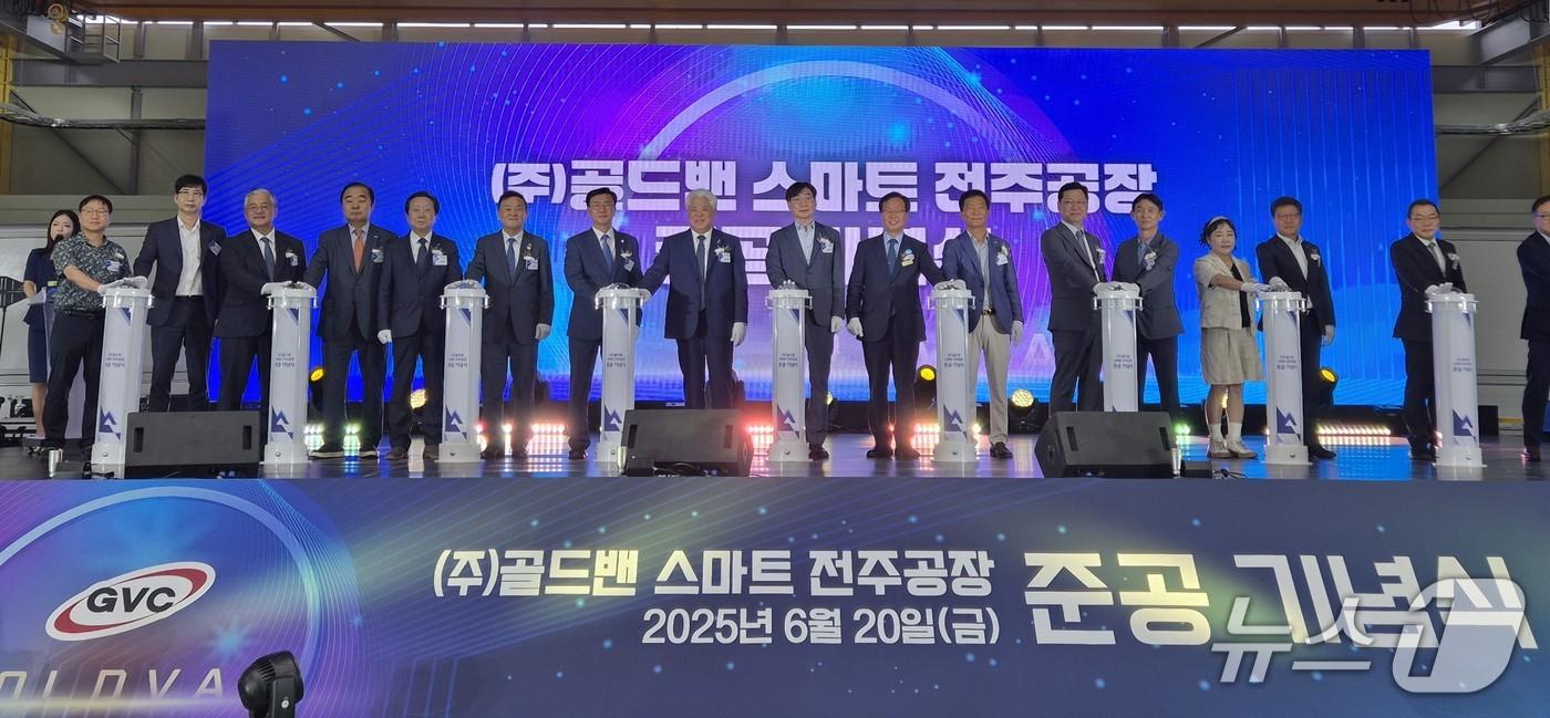 20일 특수차량 제조 전문기업 (주)골드밴 완주공장에서 열린 증설 준공식 모습.(전북도 제공. 재판매 및 DB금지)/뉴스1