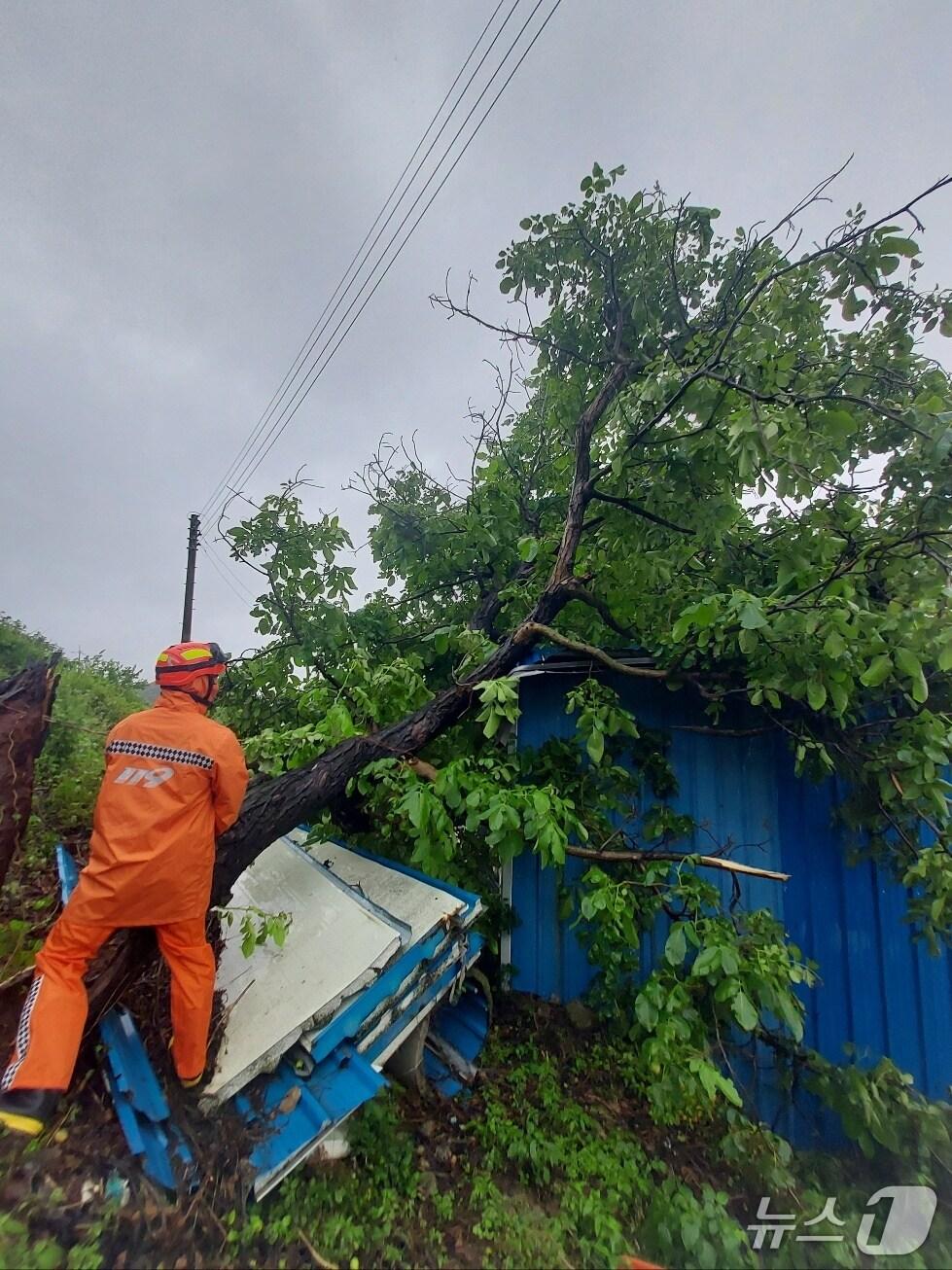 전북 전지역 호우특보, 7개 시군은 산사태주의보21일 오전 11시 3분께 전북 무주군 안성면에서 강한 비로 인해 나무가 창고 위로 쓰러졌다.(전북소방본부 제공. 재판매 및 DB금지)관련 키워드전북 날씨호우특보관련 기사극한호우 130분 전 경보 목표했지만…전북·강원 50점 미만[오늘의 날씨]전북(16일, 목)…흐리고 아침까지 비전국에 거센 가을비…최대 100㎜ 이상 '물폭탄'[오늘날씨]전국에 '가을비' 소식…충청·전라권엔 최대 80㎜[오늘날씨]주말까지 가을비 소식…충청·전라권엔 최대 80㎜ [내일날씨]