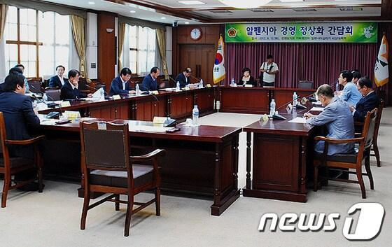 도의회·알펜시아 비대위 ‘경영 정상화 간담회’ 가져강원도의회 기획행정위원회와 알펜시아 비상대책위원회는 10일 '알펜시아 경영 정상화 방안 감담회'를 가졌다. 2013.09.10/뉴스1 © News1 황준 기자 관련 키워드알펜시아도의회평창올림픽