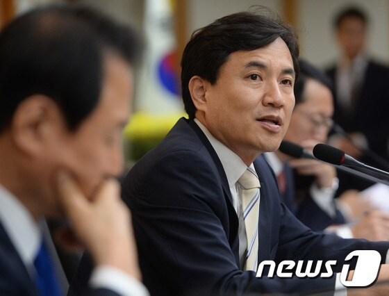 질의하는 김진태 국회의원의 모습. 2016.5.23/뉴스1 ⓒ News1 구윤성 기자