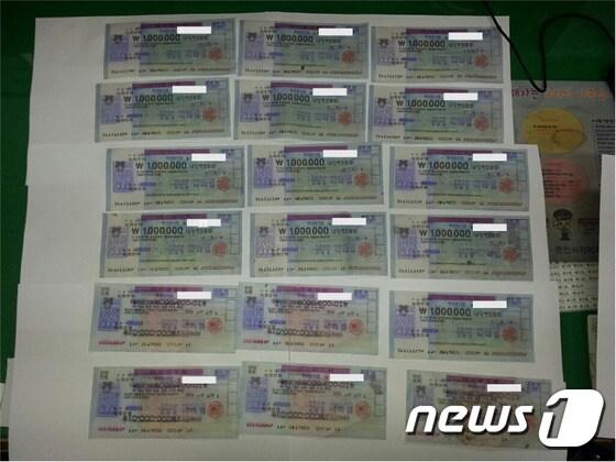 수표.(춘천경찰서 제공) ⓒ News1