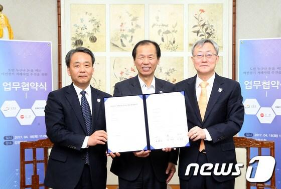 인공지능 등 클라우드 기반 에너지 4차 산업강원도는 ㈜굿센(대표 윤석구), ㈜인코어드테크놀로지스(대표 최종웅)와 도내 아낀전기 거래사업에 필요한 기술개발 및 관련 산업의 투자 활성화, 육성지원 등에 관한 업무협약을 18일 체결하고 ‘아낀전기 거래사업’을 본격적으로 추진한다.(강원도청 제공)2017.4.18/뉴스1ⓒ News1 신효재 기자