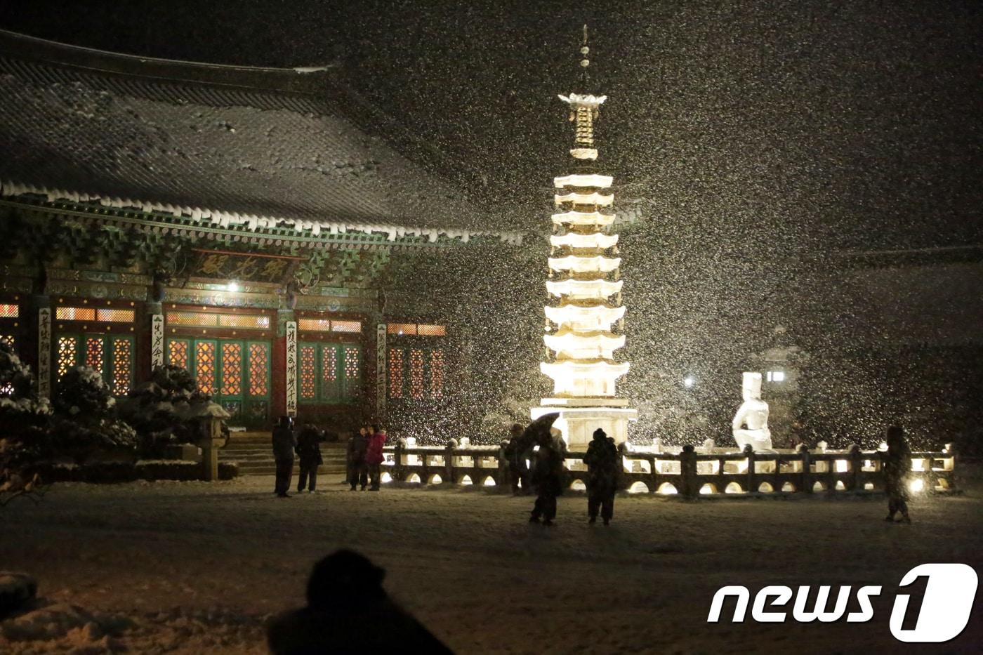 크리스마스 이브인 24일 오후 강원 평창군 오대산 월정사에 함박눈이 내리며 장관을 이루고 있다. 2017.12.24/뉴스1 ⓒ News1 박하림 기자