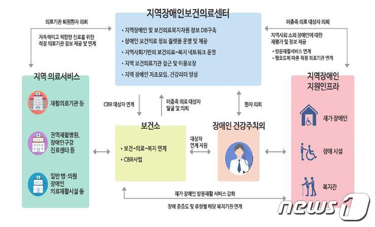 지역장애인보건의료센터 운영 체계. (강원도 제공) 2019.10.16/뉴스1 ⓒ News1관련 키워드강원도지역장애인보건의료센터관련 기사강원도, '2026년 달라지는 사업·제도' 발표횡성형 노인 통합돌봄사업 본격 확대 시행…“노인복지 강화”