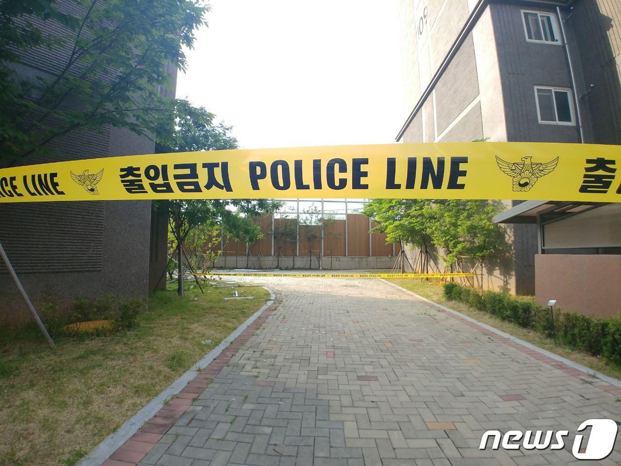 지난 7일 오전 5시51분께 강원 원주시 문막읍의 한 아파트에서 폭발 사고가 발생했다. 이 사고로 일가족 3명이 숨졌다. 부부는 아파트 화단에서 발견돼 6층에서 뛰어내려 변을 당한 것으로 추정되고 아들은 아파트 작은 방에서 숨진 채 발견됐다. 2020.6.8/뉴스1 ⓒ News1 박하림 기자