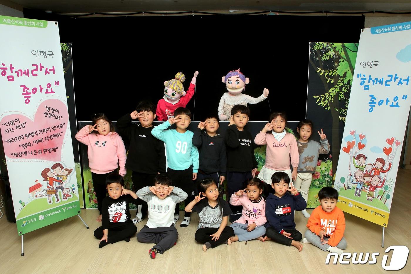 저출산 인식개선 인형극 행사에서 아이들이 인형극 관람 후 기념사진 촬영을 하고 있다. (자료사진)ⓒ News1 DB