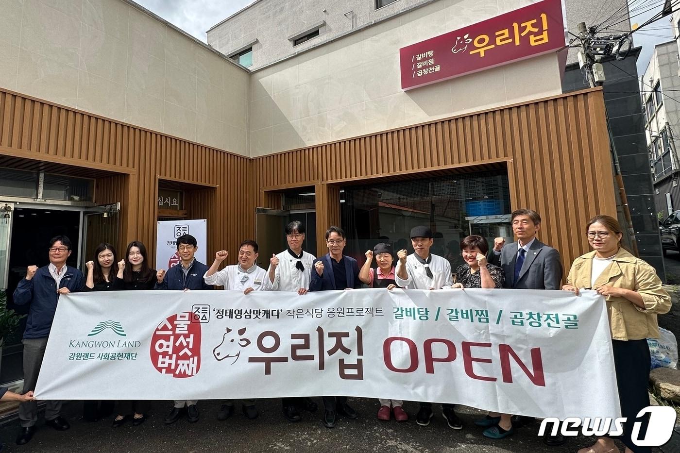 강원랜드사회공헌재단이 리모델링, 환경개선 지원한 식당 '우리집'강원랜드사회공헌재단이 주관하는 ‘정·태·영·삼 맛캐다’ 프로젝트 26호점 '우리집'이 최근 강원 태백 황지동에서 본격 영업을 시작한 가운데, 프로젝트 참가자들이 기념사진을 촬영하고 있다. (강원랜드 제공) 2023.9.22/뉴스1관련 키워드우리집강원랜드사회공헌재단프로젝트태백황지동신관호 기자 "석탄공사 부채를 강원랜드가 갚으라고?"…지역사회 반발"신천지 문제로 갈등" 아내 살해 60대에 징역 15년 구형