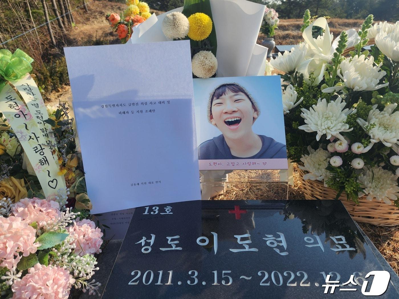 21대 국회 임기 종료 D-30…도현이법 폐기 임박'급발진 입증' 소비자가 하라는 현행법…'다윗과 골리앗' 싸움2022년 12월 강릉에서 일어난 '급발진 의심사고'로 숨진 이도현군의 묘소.(김용래 강원도의원 제공)차량 결함에 의한 급발진 여부 밝힐 '재연 시험' 준비하는 운전자와 제조자 측.2024.4.19/뉴스1 한귀섭 기자2022년 12월 강원 강릉에서 일어난 차량 급발진 의심사고 현장.(뉴스1 DB)관련 키워드도현이법강릉급발진강릉급발진의심사고급발진티볼리에어도현이사고허영이재명윤왕근 기자 강릉원주대, 중앙아시아 교육기관 초청 연수…유학생 유치 시동"한파·대설 미리 대비하세요" 삼척시, 이중 안전 캠페인 전개관련 기사"할머니는 브레이크를 밟았나" '강릉 급발진 의심 사고' 오늘 선고손자 숨진 '급발진 의심 사고'…2년 넘긴 공방 오늘 '마침표'