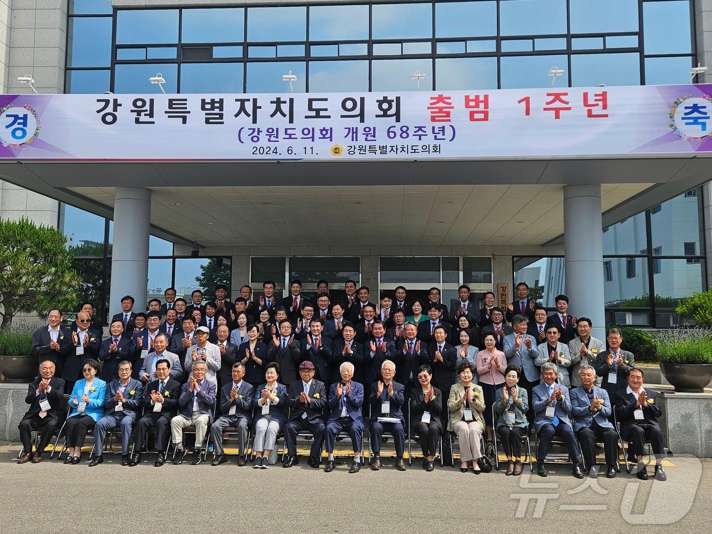 권혁열 도의장, 김진태 지사, 신경호 교육감, 전현직 도의원 등 참석 강원특별자치도의회, 출범 1주년 기념 촬영. 2024.6.11 한귀섭 기자 강원특별자치도의회에서 기념사하는 권혁열 도의장.2024.6.11 한귀섭 기자관련 키워드강원도의회한귀섭 기자 강원경찰청, '휴대용 열화상 카메라' 등 맞춤형 장비 9종 도입신축 공사·전원주택 분양 미끼로 20억 원 가로챈 50대 재판행관련 기사김시성 강원도의회 의장, 강원FC 시즌권 구매·기부 릴레이 동참음주운전 공개사과하고 또 음주사고 류인출 강원도의원…검찰 송치'무주공산' 양양군수 선거전 속도…여야·무소속 10여명 하마평음주운전 공개사과까지 한 류인출 강원도의원 '또 적발'…“즉각 사퇴하라”음주로 사과했는데…또 음주 운전한 현직 강원도의원
