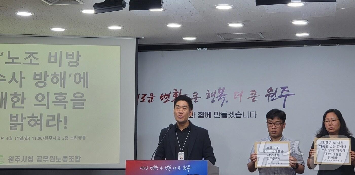 관련 키워드원주시원주시청공무원노동조합노조비방글논란경찰신관호 기자 "민망해서"…계단서 넘어져 도와준 구급대원들 때린 50대 여성[오늘의 날씨] 강원(20일, 토)…흐리고 비·바람, 밤엔 빙판길관련 기사원주시노조, 겨울철 맞아 조합원들에게 단체 방한 옷 지급"공무원도 노동절엔 쉬자"…원주시노조, 국회 변화없자 헌법소원원주시 공무원노동조합 '사랑의 김장 봉사'…어려운 이웃에 전달민노총 활동가 부적절 임금 판결…법원 "원공노에 배상해야"[오늘의 주요일정] 정치·정부 (7일, 금)
