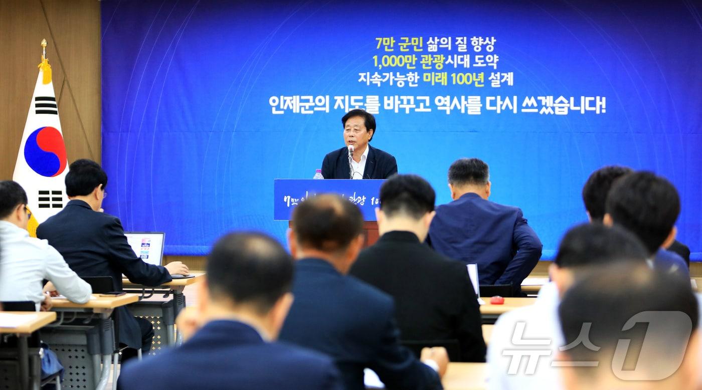 인제군청 대회의실서 민선 7기·8기 출범 6주년 기념 기자회견최상기 인제군수가 9일 인제군청 대회의실에서 열린 ‘민선 7기·8기 출범 6주년 기념’ 기자간담회에서 발언하고 있다.(인제군 제공) 2024.7.9/뉴스1최상기 인제군수가 9일 인제군청 대회의실에서 열린 ‘민선 7기·8기 출범 6주년 기념’ 기자간담회에서 발언하고 있다.(인제군 제공) 2024.7.9/뉴스1관련 키워드강원인제최상기간담회이종재 기자 강원도, 핵심 광물 '텅스텐' 육성 방안 발표…"100% 자급 체계 구축"양구군, 천연기념물 산양 보호 나선다…먹이 공급·밀렵 방지 홍보관련 기사최상기 인제군수 내년 3선 도전…"군민 삶의 질·소득 높일 것"육군 3군단, 2025년 6·25 전사자 발굴 유해 합동 영결식 엄수인제군, 2026년도 예산안 6685억 편성강원 설악권 행정협의회 "양대 철도 적기 완공위해 힘 모아야"인제군, 더나은교육지구 사업 지속 추진…4년간 총 16억 투입