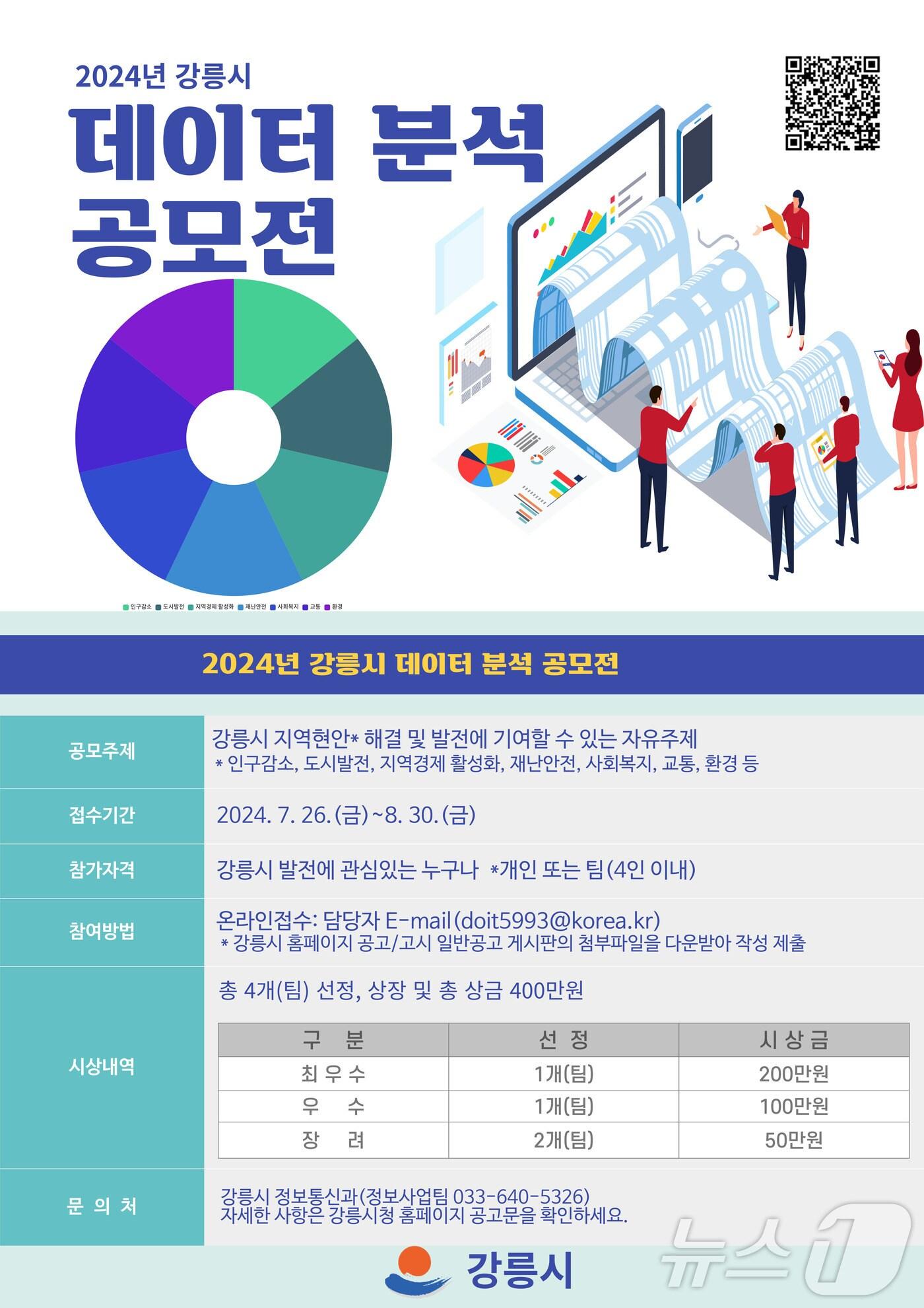'2024 강릉시 데이터 분석 공모전' 개최2024년 강릉시 데이터 분석 공모전 안내 포스터.(강릉시 제공) 2024.7.31/뉴스1관련 키워드강릉시윤왕근 기자 의장 선거 앞두고 '뇌물공여' 강원 고성군의원 첫 재판서 공소사실 인정강릉원주대, 중앙아시아 교육기관 초청 연수…유학생 유치 시동관련 기사"올 시즌 홈경기 모두 강릉"…시즌권 단체구매 붐 조성 나선 강릉시"문화예술 이끌 인재 찾습니다" 강릉문화재단, 공개채용'포장 디자인'부터 '전시 부스'까지…강릉시, 중소기업 마케팅 지원"교육 위해 찾아오는 도시로" 강릉시, IB 교육·돌봄 패키지 본격 추진'의원 7명 중 3명' 뇌물수수 재판…지방의회 '존폐론'을 다시 생각한다