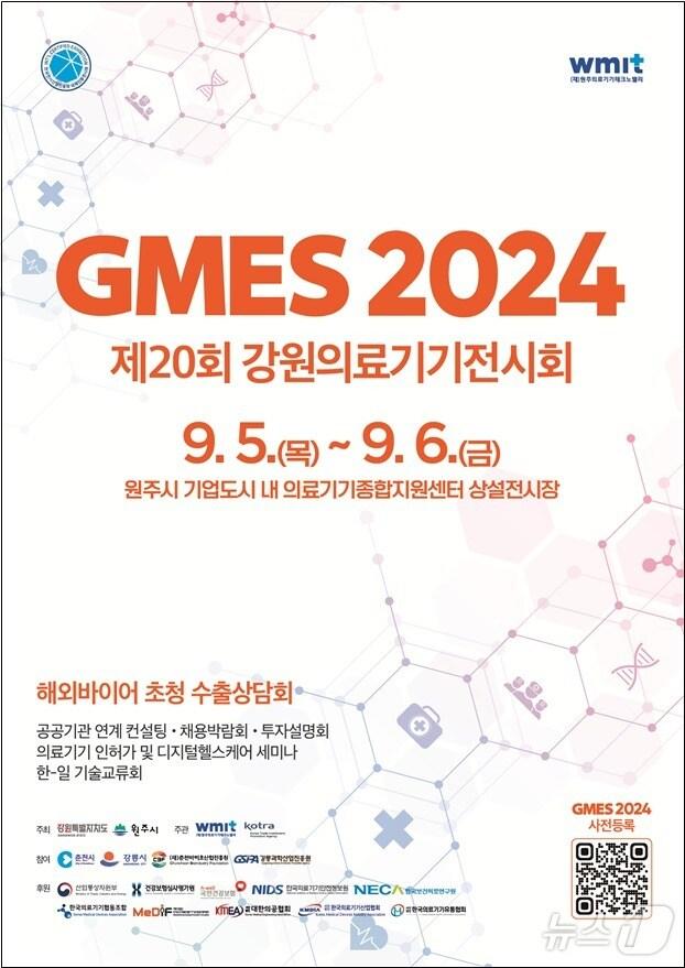 원주 기업도시 의료기기종합지원센터서 134개 기관·기업 참가…해외 바이어 매칭‘제20회 강원의료기기전시회‘(GMES 2024)가 오는 9월~6일 원주기업도시 내 의료기기종합지원센터 상설전시장에서 펼쳐진다. (원주의료기기테크노밸리 제공) 2024.8.26/뉴스1관련 키워드강원의료기기전시회원주기업도시의료기기종합지원센터상설전시장의료기기강원원주원주의료기기테크노밸리신관호 기자 'CES 2026' 참가한 원주 기업들 191만여 달러 계약 성과원주시 올해도 공영주차장 지속 확충…53억 들여 1042면 조성관련 기사'GMES 2025' 참가 기업들 500억 대 수출 계약 '역대 최대'해외바이어 150여 명 온 'GMES 2025' 수출 계약 400억 돌파할까"피부탄력, 탈모완화"…의료·뷰티기업들 원주서 기량 펼친다'GMES서 선보이는 첨단 제품'…의료기기 139개사 원주로 집결