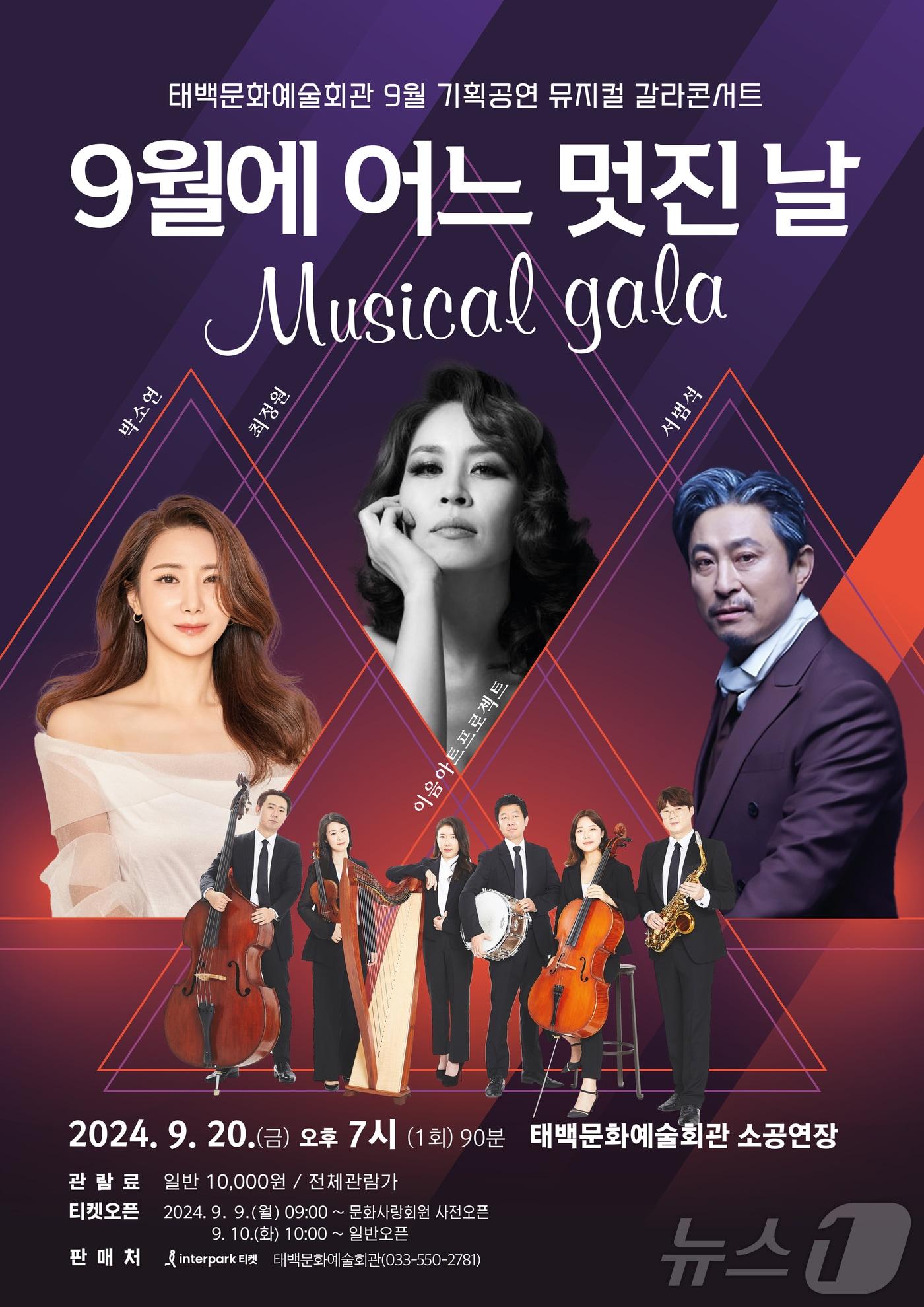 강원 태백시, 9월 기획공연 뮤지컬 갈라 콘서트 ‘9월의 어느 멋진 날’ 포스터.(태백시 제공)관련 키워드태백한귀섭 기자 강원교육청, 교육감입학전형 고등학교 신입생 5487명 23개교 추첨 배정강릉·동해·삼척·강원중부산지·남부산지 강풍주의보 발효관련 기사태백시, 2자녀 이상 가구·모범 납세자 '공영주차장 요금 감면'태백시, 2~3월 탄탄페이 할인율·한도↑…소상공인 사업 강화춘천·원주 등 15개 지역 한파주의보 해제"카지노 규제개혁의 원년"…강원랜드 몸집 키워야 하는 이유태백시, 31일까지 자동차세 연납 접수…'4.57% 공제'