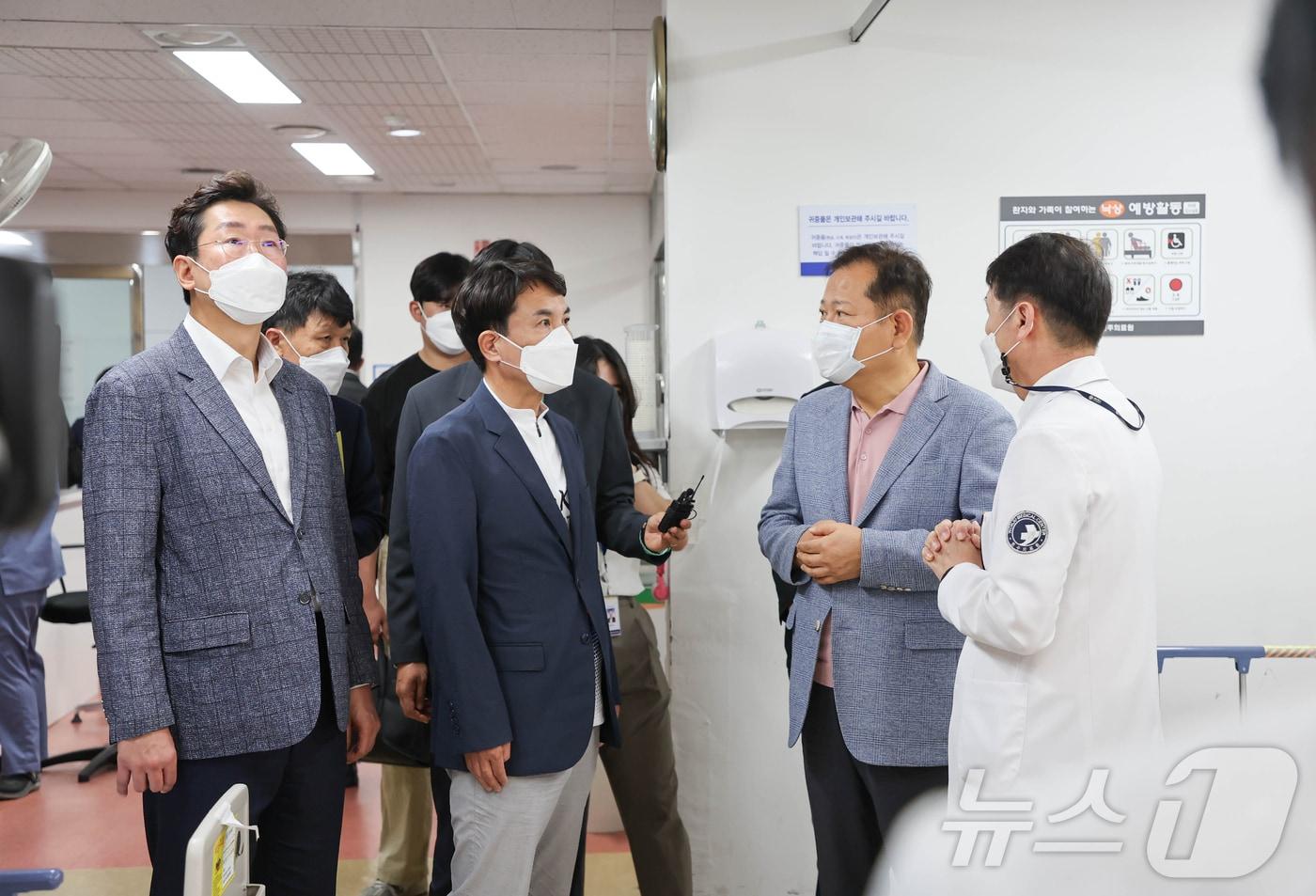 김진태 강원특별자치도지사가 15일 이상민 행정안전부장관과 원주의료원을 찾아 추석 연휴기간 중 응급의료 및 비상진료체계 운영현황을 듣고 있다.(강원도 제공)관련 키워드강원김진태이상민한귀섭 기자 춘천 신북 재활용도움센터 3주간 시범운영…1.8톤 수거 성과강원도, 해넘이·해맞이 행사 안전관리 점검 만전