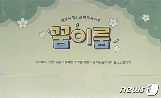 강원 원주시의 청소년 꿈이룸 바우처 카드 자료 사진. (뉴스1 DB)관련 키워드원주시꿈이룸바우처지원사업만족도예체능초등학생신관호 기자 평창군, 올해 공공하수도 신·증설 사업 165억 투입정선군, 3년간 고향사랑기부 6억 돌파…답례품 확대관련 기사다시 뛰는 원주시의 '이노베이션 폴리시''기업·고용↑'…원주시 인구 지난해 36만 3194명…우상향 계속원주시, 내년 예산 1조7412억 확정…"시민생활·미래성장 중점"'매월 10만원 예체능비'…원주시, 내년 꿈이룸 바우처 신규 접수원주시 '꿈이룸 한마당' 성공개최 유공자 23명 포상