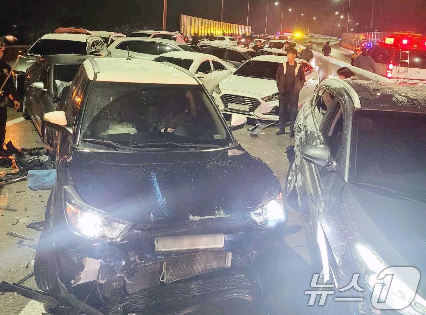 최초 경차 급정거 후 연쇄 추돌…블랙아이스 등 원인 조사 중정선서 눈길 미끄러진 트럭 전복…1명 숨져수도권과 강원지역에 대설특보가 내려진 27일 오후 5시 49분쯤 강원 원주시 호저면 만종리의 한 도로에서 53대의 차량이 추돌하는 사고가 발생, 파손된 차량이 도로를 가득 메우고 있다. (강원소방본부 제공) 2024.11.27/뉴스1수도권과 강원지역에 대설특보가 내려진 27일 오후 5시 49분쯤 강원 원주시 호저면 만종리의 한 도로에서 53대의 차량이 추돌하는 사고가 발생, 파손된 차량이 도로를 가득 메우고 있다. (독자제공) 2024.11.27/뉴스1관련 키워드원주53중추돌원주만종53대연쇄추돌윤왕근 기자 "속초 '72정' 인양 2027년 착수 가능할듯"…실종자 가족 "희망 생겼다""강릉~부산 3시간 50분 시대 열렸다"…동해선 KTX 투입 첫날 표정신관호 기자 15만원 '기본소득' 앞둔 정선군, 인구↑…3만5000명 회복하나솔내음회, 평창인재육성장학재단 장학금 300만 원 기탁