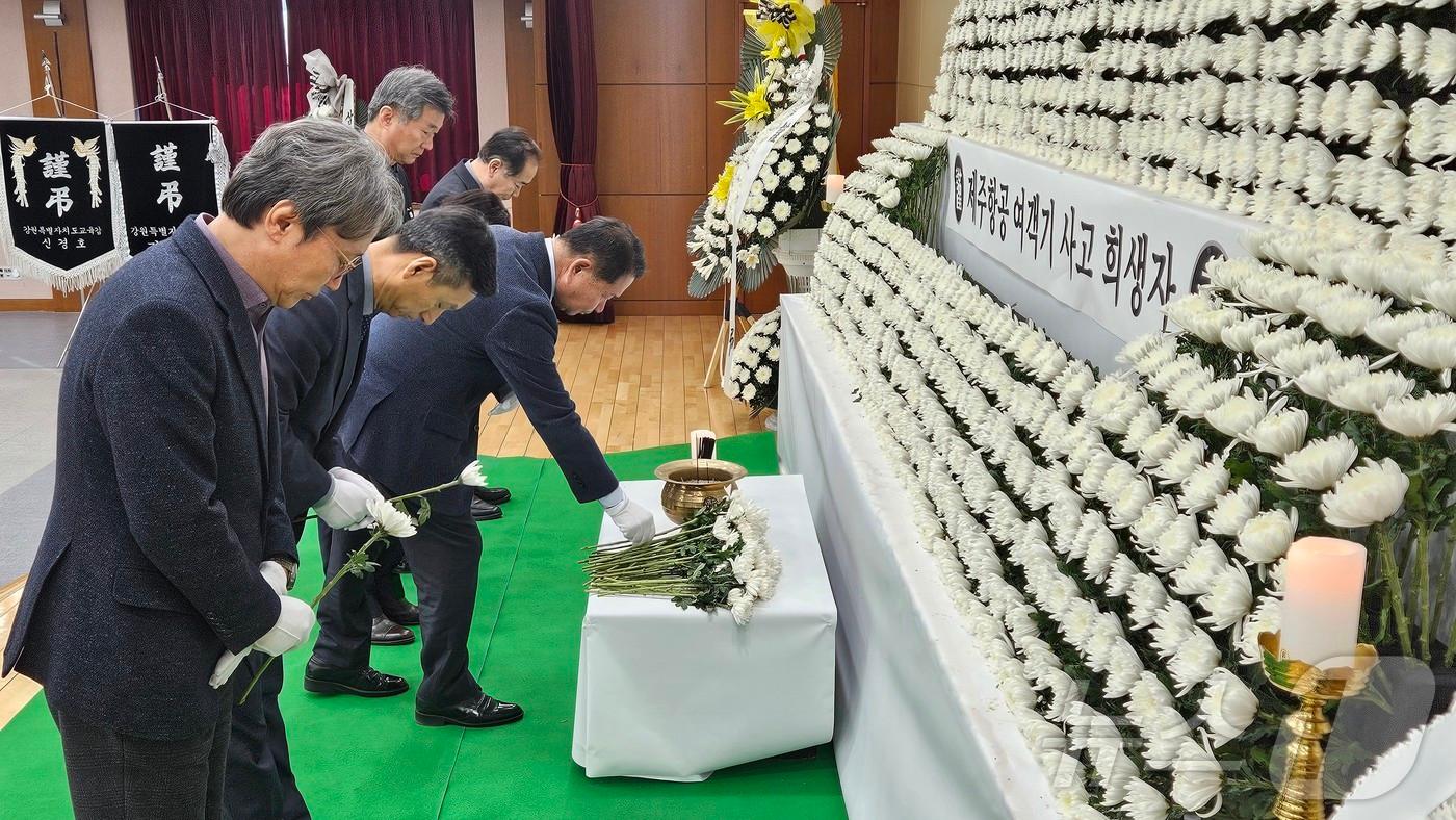 [무안 제주항공 참사] 31일 오전 11시 기준 191명 다녀가신경호 교육감, 엄성규 강원경찰청장, 김시성 의장 등 찾아신경호 강원도교육감이 31일 오전 도청 별관 4층 대회의실에 마련된 합동분향소를 찾아 제주항공 여객기 참사 희생자들을 추모하고 있다.2024.12.31 한귀섭 기자관련 키워드강원추모무안여객기참사한귀섭 기자 [오늘의 날씨] 강원(16일, 금)…아침 최저 -5도, 동해안 불조심강원경찰청, '휴대용 열화상 카메라' 등 맞춤형 장비 9종 도입