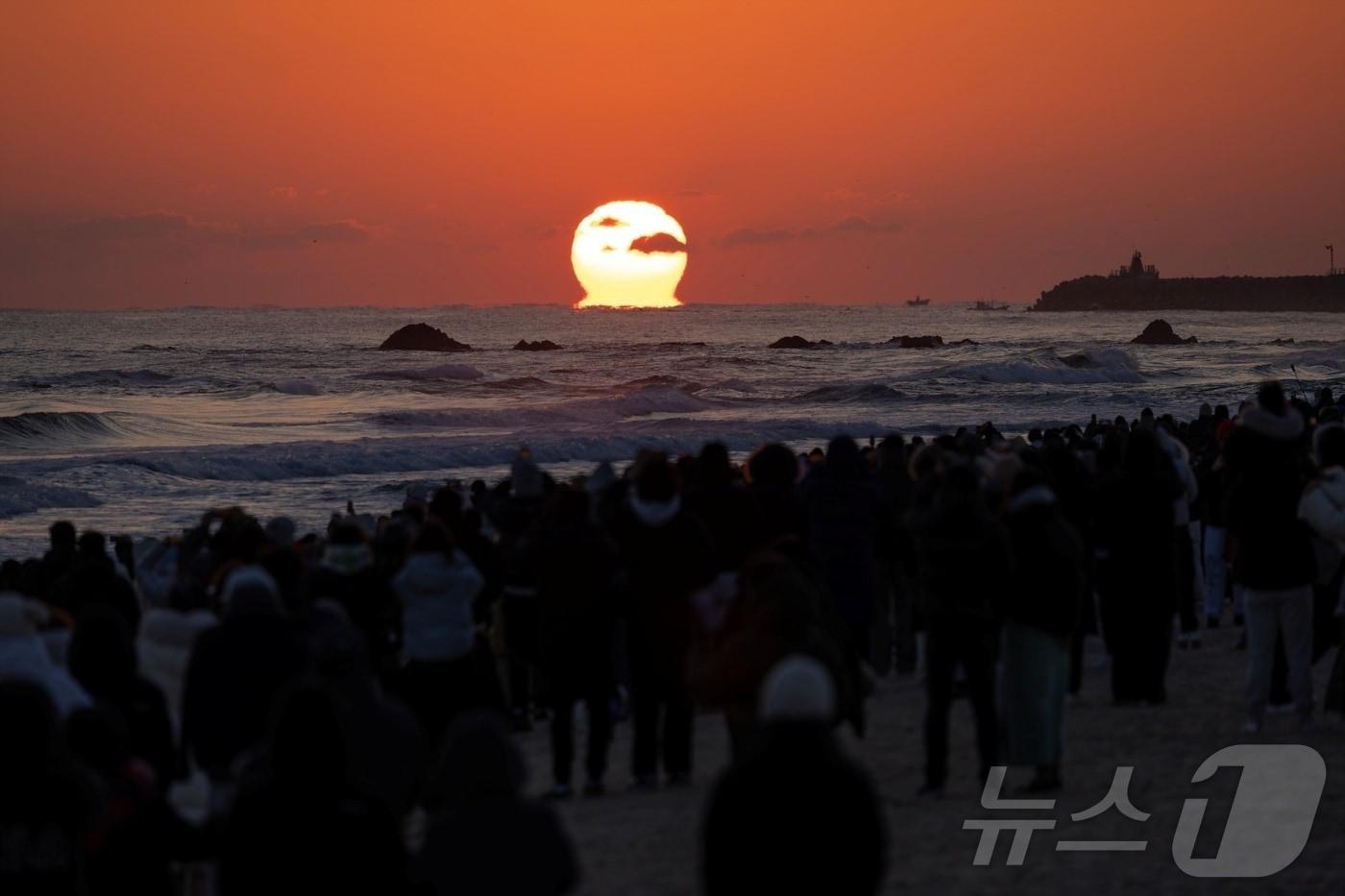 무안 제주항공 참사 여파에 지자체 공식행사 취소‧축소해맞이 명소서 건강‧사랑‧취업 등 저마다 소망 기원1일 오전 강원 동해 망상해변 앞 바다에 붉은 해가 떠오르고 있다.(동해시 제공)/뉴스1 ⓒ News1 윤왕근 기자2025년 을사년(乙巳年) 새해 첫날인 1일 경북 포항시 북구 영일대해수욕장에 모인 해맞이객들이 일출을 지켜보고 있다. 2025.1.1/뉴스1 ⓒ News1 최창호 기자2025년 을사년(乙巳年) 새해 첫날인 1일 오전 부산 해운대해수욕장에서 시민들이 새해 첫 해돋이를 감상하고 있다. 2025.1.1/뉴스1 ⓒ News1 윤일지 기자2025년 을사년(乙巳年) 새해 첫날인 1일 오전 부산 해운대해수욕장에서 시민들이 새해 첫 해돋이를 기다리고 있다. 2025.1.1/뉴스1 ⓒ News1 윤일지 기자1일 오전 대구 동구 국립신암선열공원 전망대를 비롯해 아양교와 아양기찻길 등 금호강 인근을 찾은 시민들이 희망찬 2025년 새해 첫 일출을 맞이하고 있다. 2025.1.1/뉴스1 ⓒ News1 공정식 기자관련 키워드강릉경포해운대해맞이소망일출이종재 기자 여자 문제로 다투다 연인 침대로 밀친 20대…법원 "공격적 성격 크다""성관계 할래? 1천만원 줄래?"…음주운전 40대女 협박한 30대 징역형윤왕근 기자 강원도, 연안어선 감척 예산 84억 투입…전년 대비 3.5배 확대속초시장 쟁탈전…이병선 '미래' vs 김철수 '재도약' vs 주대하 '개혁'관련 기사"새해엔 적토마처럼 달리자"…전국 곳곳 해맞이 '인산인해'(종합2보)"적토마처럼 달리자" 병오년 해맞이 인산인해…전국 곳곳 "와" 탄성(종합)성탄절·해돋이 명소 안전 관리…연말연시 인파사고 대비"해운대 아닌 경포서 해맞이"…동해선 첫 KTX '부산발' 예매 전쟁"날은 흐리지만"…역대급 폭염에 전국 바다·계곡·물놀이장 북적(종합)