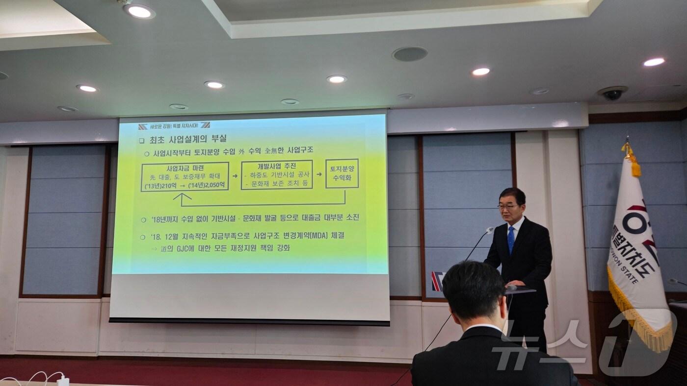 "2050억 원에 대한 가치를 회복할 수 있는 합리적인안"정광열 강원도 경제부지사가 13일 도청 브리핑룸에서 기자회견으 갖고 강원중도개발공사와 강원개발공사의 통합 방안에 대해 설명하고 있다.2025.2.13 한귀섭 기자강원도청.(뉴스1 DB)관련 키워드강원정광열부지사한귀섭 기자 강원소방, 화재안전조사 업무 담당 직원 맞춤형 교육 실시춘천레저·태권도조직위-태권도진흥재단, 정책·콘텐츠 협력 업무협약관련 기사'수부도시' 춘천…여론조사서 육동한 시장, 다자·양자 대결서 앞서6·3 지선 6개월 앞으로…'수부도시' 춘천 여야 후보군 구체화정광열 "강원연구개발특구 지정 기쁘지만, 본부 춘천 유치 협력해야"춘천고총동문회, '강원 학생독립운동 기념관 설립 기념 포럼' 개최정광열 전 강원도 경제부지사, 춘천시장 출마 선언