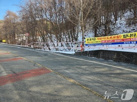 지난 12일 오후 춘천 동산면 군자리에 위치한 공원묘원(춘천안식원)의 진입로에 해당 구간이 사유지임을 알리는 현수막이 내걸려 있다. 2025.2.12/뉴스1 이종재기자관련 키워드강원춘천안식원사유지매입토지주이종재 기자 강원도, 핵심 광물 '텅스텐' 육성 방안 발표…"100% 자급 체계 구축"양구군, 천연기념물 산양 보호 나선다…먹이 공급·밀렵 방지 홍보관련 기사춘천시가 수년째 무단사용?…토지주들 "재산권 피해 막심"