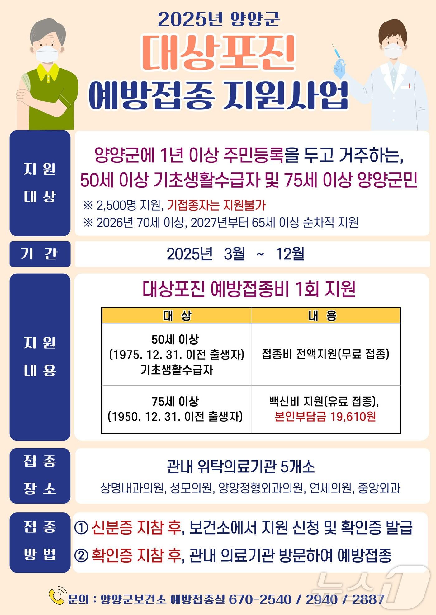 2027년까지 65세 이상으로 확대 시행양양군 대상포진 예방접종 홍보물.(양양군 제공, 재판매 및 DB 금지) 2025.2.24/뉴스1관련 키워드양양군윤왕근 기자 의장 선거 앞두고 '뇌물공여' 강원 고성군의원 첫 재판서 공소사실 인정강릉원주대, 중앙아시아 교육기관 초청 연수…유학생 유치 시동관련 기사"지역 창업 응원합니다" 양양 로컬페스티벌 17일 개막양양 공공체육시설, 이용객·수입 '쑥'…볼링·탁구·파크골프장 인기'창업은 수도권, 입지는 지방'…기업 만족도 높은 자치단체 보니"실전 같은 훈련" 양양군, 재난대응 안전한국훈련 우수기관 선정민원인과 수차례 성관계, 안마의자도 받았다…양양군수 2심도 실형